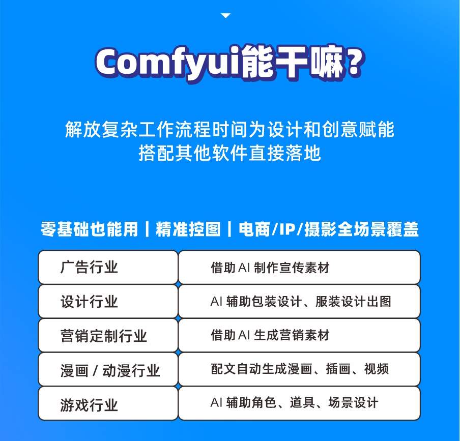 节点式工作流:与普通AI工具(如Stable Diffusion)相比,ComfyUI通过可视化节点串联复杂流程(如局部重绘→模型融合→PS精修),适合广告包装、影视分镜等需要多步骤精细控制的场景。